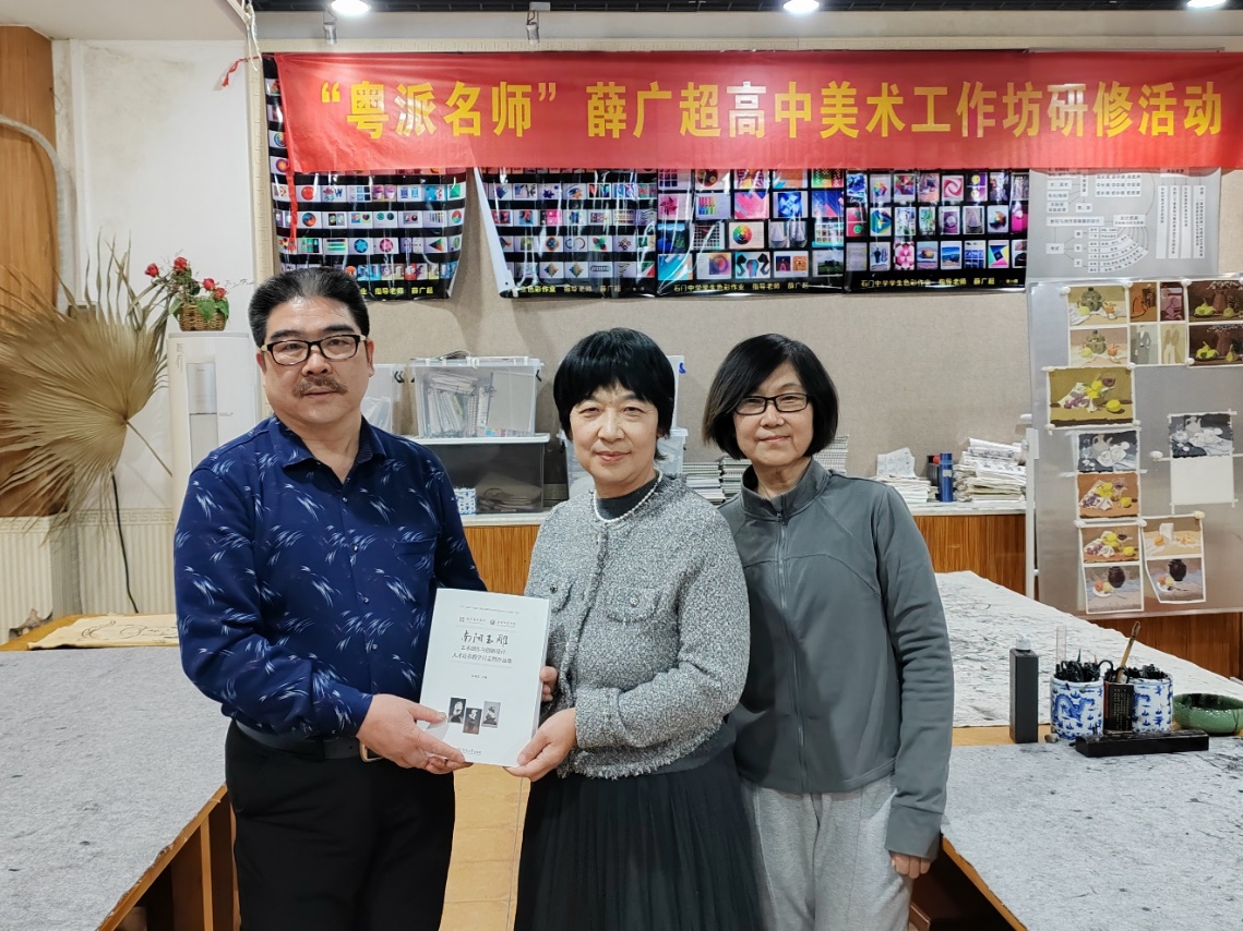 图1 朱晓红院长向“粤派名师”高级美术教师薛广超赠送科研成果