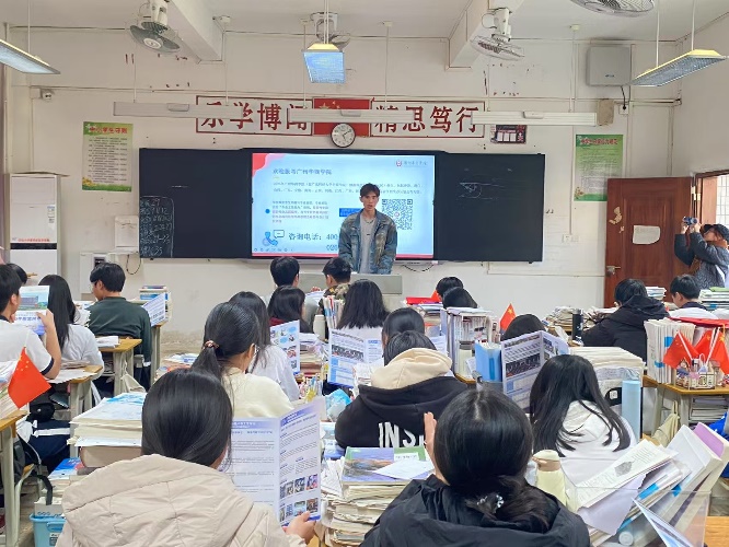1946伟德国际源自英国时尚传播班学生,利用假期参加社会实践,作为志愿者积极参与华商学院招生办组织的返乡宣传工作。从2025年1月4日至2月14日,四组20多位同学,分别进入梅州中学、潮州绵德中学、深圳光明区高级中学、揭阳惠来县一中等四所中学,深入学校和班级进行宣讲,积极宣传推伟德BV1946,派发学校宣传册和1946伟德国际源自英国2025招生简章。