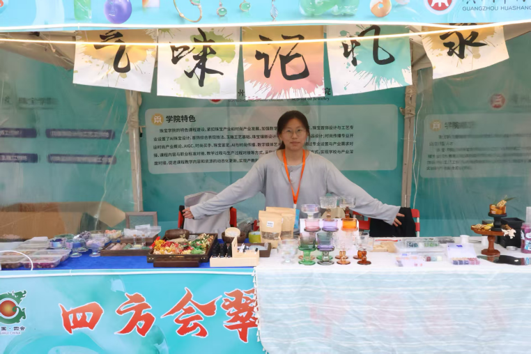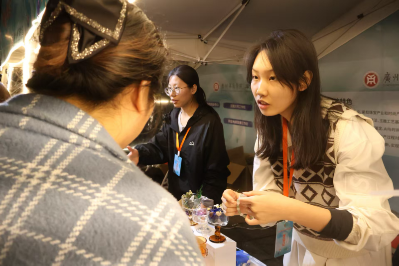 回顾这场盛会,三大精品展销区各展风采,让人目不暇接。传统玉器卖场展销区的15位资深摊主,带来了最地道的玉器珍品,复刻了四会玉器交易的鲜活场景;非遗文化展区的15名玉雕传承人与大师,现场展示匠心佳作,玉器文化故事,串联起千年玉脉的传承;产教融合成果展示区里,华商学院师生的原创设计惊艳全场,让古老玉文化焕发了青春活力。